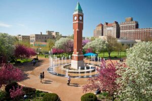 সেন্ট লুইস বিশ্ববিদ্যালয়ে প্রাচীন আর আধুনিক দুই ধরনের দালানই আছে। আমাকে বেশি টানে প্রাচীনগুলো। এগুলোর দিকে তাকালে গা কেমন শিরশির করে। মনে হয় যেন দুই/তিন শ’ বছর আগে চলে গেছি। পুরো ক্যাম্পাসে ছড়িয়ে ছিটিয়ে আছে অনেকগুলো হ্যামক। স্টুডেন্টরা এখানে শুয়ে থাকে, দোল খেতে খেতে পড়ে, বিশ্রাম নেয়। আর আছে ঘাসের উপর বিছানো বেঞ্চ। খোলা আকাশের নিচে বসে, ফুরফুরে হাওয়া খেয়ে আপনি পড়ুন, খান, আড্ডা দিন কিংবা বিশ্রাম নিন – আপনার ইচ্ছা। এই যেমন আমি চটপট খেয়ে নিলাম! ‘পায়াস লাইব্রেরি’ নামক পাঠাগারটাতে আছে ১৩ লাখ বই, আর আছে ‘মুন গেযার’ নামে একটা ভাস্কর্য। এটা যতবার দেখি, আনমনা হয়ে যাই। আমিও হলুদ চাঁদের দিকে এভাবে তাকিয়ে থাকি কিনা! আরও আছে ভাস্কর্য পুরো ক্যাম্পাস জুড়ে, অসংখ্য। এদের মধ্যে একটার ছবি দিলাম তিন অ্যাঙ্গেলে। অত্যাধুনিক এই ভাস্কর্যের মাথামুণ্ডু আমি বুঝতে পারিনি। কেউ পারলে বুঝিয়ে দেবেন একটু।