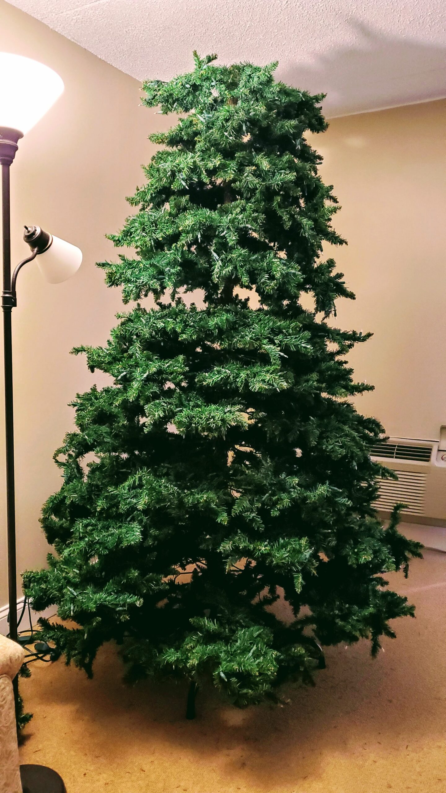য়ে লম্বা গাছের রূপ দেওয়া হয়। ঐ কার্টনে পাঁচটা অংশ রাখা আছে। আমি চারপাশে তাকালাম। বিশ্বাস হচ্ছিল না একটা আস্ত গাছ পেয়ে গেছি সম্পূর্ণ বিনামূল্যে। কার্টনটা এত ভারী যে আলগাতে পারছি না। তাই ঠেলে ঠেলে ঘষটাতে ঘষটাতে এলিভেটরে উঠালাম। বাসায় এনে যখন জোড়া লাগালাম, ছয় ফুট লম্বা বড়দিন বৃক্ষ তৈরি হল। আমার চোয়াল ঝুলে পড়ল। কতটা বেপরোয়া হলে এই জিনিস কেউ ফেলে যায়?