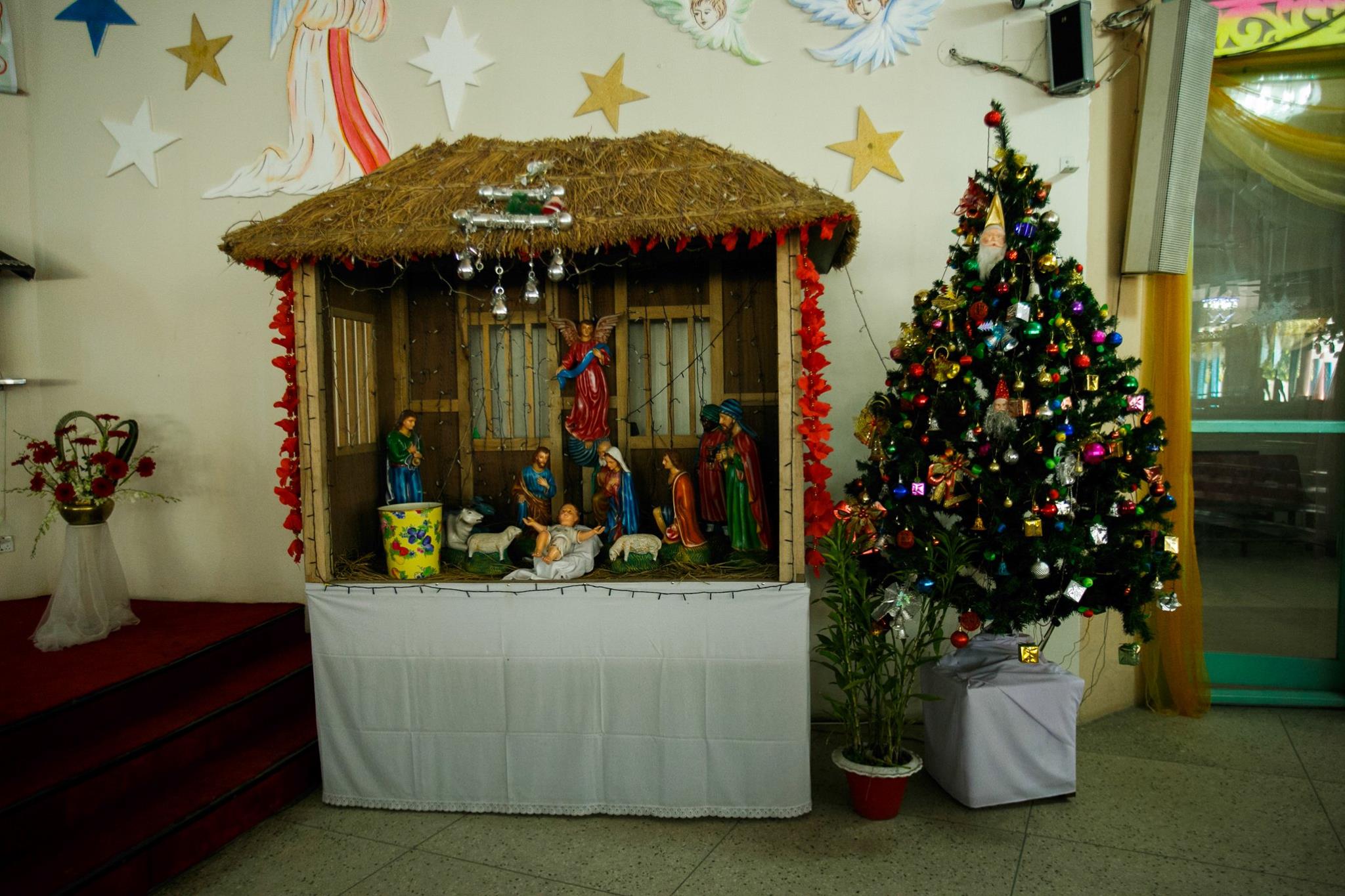 তেজগাঁ গির্জার ভেতর সাজানো ছোট্ট বড়দিন বৃক্ষ