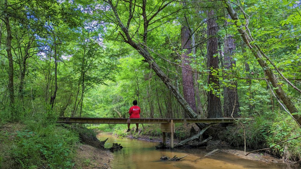 যা হোক, কথা বলছিলাম স্যাম হিউস্টন জাতীয় অরণ্য নিয়ে। সেখানে যাওয়ার পথে বড় বড় গাছযুক্ত কিছু ছায়াবীথি চোখে পড়লো। বসন্তে নতুন পাতা গজিয়ে ঝলমল করছে। একসময় গুগল জিপিএসের বেটি বললো, ‘টেক নেক্সট ফার্ম টু মার্কেট রোড।’ টেক্সাসে আসা ইস্তক ‘ফার্ম টু মার্কেট‘ রাস্তার নাম শুনছি। যুক্তরাষ্ট্রের সরকার কৃষকদের সুবিধার জন্য এই রাস্তাগুলো বানিয়েছে। যেকোনো খামার থেকে যেন খাবার দাবার বিক্রি করার জন্য সহজে বাণিজ্যকেন্দ্র বা মার্কেটে নিয়ে আসা যায়, সেজন্য এসব রাস্তা। রাস্তাগুলো গ্রামীণ জনপদকে বিপণী কেন্দ্রের সাথে যুক্ত করেছে। আমরা বেশ কয়েকটা ফার্ম টু মার্কেট রোড পার হয়ে এক ঘণ্টার ভিতর চলে এলাম কেগল ক্যাম্পগ্রাউন্ডে। দুপুর দুটো থেকে চেক-ইন শুরু, কিন্তু দুটো বাজতে এখনো দেড় ঘণ্টা বাকি। প্রিন্স আগেই ভেবে রেখেছিলো এই সময়টুকু কীভাবে কাটানো যায়। তাই গাড়ি নিয়ে দৌড় দিলো আরও পঁয়তাল্লিশ মিনিট দূরের বিগ ক্রিক সিনিক এরিয়ায়। স্যাম হিউস্টন জাতীয় অরণ্যের একটা অংশ এই বিগ ক্রিক বা বড় খাঁড়ি। সিনিক এরিয়া বলতে যুক্তরাষ্ট্রে এমন জায়গা বুঝানো হয় যেখান থেকে আশেপাশের প্রাকৃতিক সৌন্দর্য স্পষ্টভাবে দেখা যায়। আমরা যুক্তরাষ্ট্রের মধ্য-পশ্চিম এবং পূর্ব-পশ্চিম অঞ্চল ঘুরার সময় দেখেছি সিনিক এরিয়াগুলো পাহাড়ের উঁচু কোনো স্থানে বানিয়ে রাখে, যেখান থেকে নিচের বনভূমি, নদী বা পাহাড়ি উপত্যকা দেখা যায়। তাই ভাবলাম বিগ ক্রিক বা বড় খাঁড়ির নৈসর্গিক সৌন্দর্য দেখার জন্যও নিশ্চয় উঁচু কোনো জায়গা আছে, যেখান থেকে পুরো খাঁড়ি দেখা যাবে বা খাঁড়ির বিশেষ কোনো অংশ।