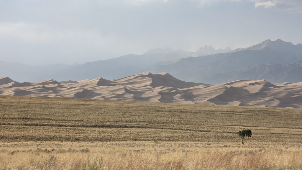 রকি নিয়ে মাতামাতি করতে করতে ভুলেই গিয়েছিলাম আমাদের প্রথম দর্শনীয় স্থান হবে গ্রেট স্যান্ড ডিউন জাতীয় উদ্যান। রওনা দেওয়ার আগের রাতে হঠাৎ মাথায় এলো, আমরা তো বালির ঢিবি নিয়ে কোনো পরিকল্পনাই করিনি! ওখানে গিয়ে কী করবো, কীভাবে সময় কাটাবো, কোনোকিছুরই ঠিক নেই। সেই যে একবার ঘেঁটে দেখেছিলাম রাতের বেলা বালুরাশিতে হাঁটাহাঁটি করা ফরজ, ওই পর্যন্তই। তখন অবশ্য আরেকটা ব্যাপার জেনেছিলাম। পায়ে হেঁটে বালির স্তূপে উঠে সেখান থেকে পিছলা খেয়ে নিচে নামার ব্যাপারটা খুব মজার। তবে সরাসরি বালিতে নিতম্ব লাগিয়ে সেটা করা কঠিন। এর জন্য স্যান্ড বোর্ড বা স্যান্ড স্লেড নিয়ে আসতে হবে। ব্যাপারটা মনে পড়ার পর বসলাম বালির ঢিবি নিয়ে গবেষণা করতে। মে মাসের চৌদ্দ তারিখ পর্যন্ত লেখাপড়া আর গবেষণা নিয়ে এতো ব্যস্ততা গিয়েছে যে, অন্যবারের মতো এবার ভ্রমণ পরিকল্পনায় সময়ই দিতে পারিনি। তাই শেষ চেষ্টা হিসেবে ঘুম ঘুম চোখে গ্রেট স্যান্ড ডিউনের অফিসিয়াল পেইজে স্ক্রল করতে লাগলাম। চিন্তা করুন, কোথায় সুন্দর একটা ঘুম দিয়ে সকালে উঠে তাজা শরীরে রওনা দেবো, তা না, রাজ্যের ক্লান্তি নিয়ে ল্যাপটপের পর্দায় তাকিয়ে আছি। সেখানে লেখা, বালুতে হাঁটাহাঁটি করার মোক্ষম সময় হলো সকালে আর বিকালে, যখন সূর্যের তেজ কম থাকে। সূর্য মাথার উপর উঠে গেলেই শেষ। গরমে বাপ-মায়ের নাম ভুলে যাবেন। তথ্যটা আমাদের বেশ সমস্যায় ফেলে দিলো কারণ এক্ষেত্রে ঘোরাঘুরির সময় সীমিত হয়ে যাচ্ছে। সকালে আর বিকেলেই যদি শুধু ঘুরতে হয়, সারা দুপুর কী করবো? আশেপাশে বনবাদাড় দেখাচ্ছে বটে, সেখানে হাইকিং করলে গরম লাগবে না? মরুভূমির বাতাস তো গরমই হওয়ার কথা। আচ্ছা যাক, ওখানে গিয়ে অবস্থা বুঝে ব্যবস্থা নেবো। আপাতত স্যান্ড স্লেড কোথা থেকে ভাড়া নেওয়া যায়, সেটা খুঁজি। উদ্যানের নিজস্ব কোনো দোকান নেই যেখান থেকে ভাড়া করতে পারবো। তবে উদ্যানের বাইরে ওয়েসিস নামের একটা দোকান দেখাচ্ছে। ট্রিপ অ্যাডভাইজরে বলছে, ওখান থেকেই সবাই ভাড়া করে। উদ্যানে ঢুকার মুখেই দোকানটা পড়ে। তাই ঠিক করলাম প্রথমে ওয়েসিস থেকে স্যান্ড স্লেড ভাড়া করবো, তারপর উদ্যানে ঢুকবো। একদিনের জন্য একটা স্লেড ভাড়া করতে বিশ ডলার লাগে। সমস্যা হওয়ার কথা না।